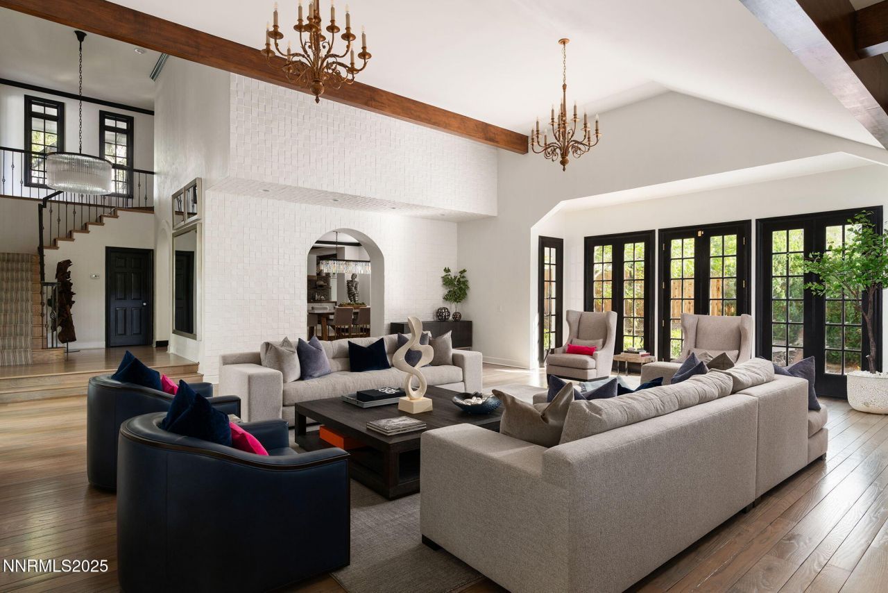 Confident, character-rich, and full of soul, this brick-and-plaster 4-bed/3.5-bath home combines old-world craftsmanship with quiet luxury across 5,699 square feet and a third of an acre. Nestled behind its French-inspired exterior on one of Reno's most storied streets, it features a layered interior with soaring ceilings, artisan finishes, and a floor plan that unfolds into a rhythm of gathering spaces and private retreats. Every detail and corner tells a story, and the right buyer will feel it instantly. From the moment you step into the entry hall, it's clear this isn't a typical home. Artisan plaster walls, solid wood doors, and hand-honed finishes whisper of craftsmanship rarely seen in modern builds. The main-level suite has a fireplace, private terrace, radiant heated floors, and a boutique-worthy closet with floor-to-ceiling built-ins for seamless organization. Upstairs, a two-bedroom wing with a shared lounge and dry bar creates a tucked-away apartment-like zone-perfect for teens, guests, or anyone who values autonomy without absence. A second en-suite bedroom on the main level provides long-term flexibility for guests or multigenerational living. Another vaulted-beam bonus room offers space for a home office, media lounge, or creative studio. Vaulted ceilings with exposed beams and an arched fireplace give the living room architectural weight, while dual chandeliers add a subtle elegance. A grid of French doors and windows shapes the room's rhythm and light. Despite its scale, the space envelops you with a built-in library and corners in which to gather or disappear. Off the living room, a converted garden studio with original brick floors serves as a home gym with views of the lush exterior. The kitchen invites you to make meals, memories, and moods. Brickwork and wood beam ceilings echo the entry and exterior, carrying the home's language forward with warmth and texture. Custom cabinetry with soft-close drawers surrounds high-end appliances-including dual Sub-Zero refrigerator drawers, Caf? double ovens, Viking warming drawer, and a U-Line ice maker. A DCS Fisher & Paykel gas range with integrated ventilation stands ready for everything from weeknight dinners to holiday feasts. The dumbwaiter from the garage is a functional delight and a favorite party trick. Even the laundry room and functional closet just off the oversized garage have a point of view. With built-in cabinetry and finishes focused on everyday ease, everyday chores feel like a design moment. The garage features generous dimensions and clean finishes, offering storage and work space beyond parking. Outside, a brick path winds through shaded patios, fruit trees, terraced garden beds, and grassy expanses. Multiple seating areas-some open-air, others tucked beneath eaves-offer places to gather, pause, and exhale. A private courtyard-shaped by layers of landscape and framed by brick-has hosted vow renewals, milestone photos, and other meaningful celebrations over the years. A powered outbuilding with a Dutch door, surrounded by irrigated raised planting beds, anchors a corner of the yard with both purpose and potential. And then there's the history of Greenridge itself, one of Reno's original prestige neighborhoods. Developed in the 1930s by Norman Biltz and modeled after luxury subdivisions in Beverly Hills and the East Coast, it once drew names like Doris Duke, Clark Gable, and Marilyn Monroe. Today, the neighborhood has traded celebrity sightings for Halloween magic shows, front-yard wine nights, and strolls with dogs and drinks in tow. People wave from lawn chairs as children roam the curved streets on scooters and bikes, or walk to the nearby golf course for a Coke and fries. Homes like this-so layered, so finished, so cherished-are increasingly rare and even more so in neighborhoods like this.
