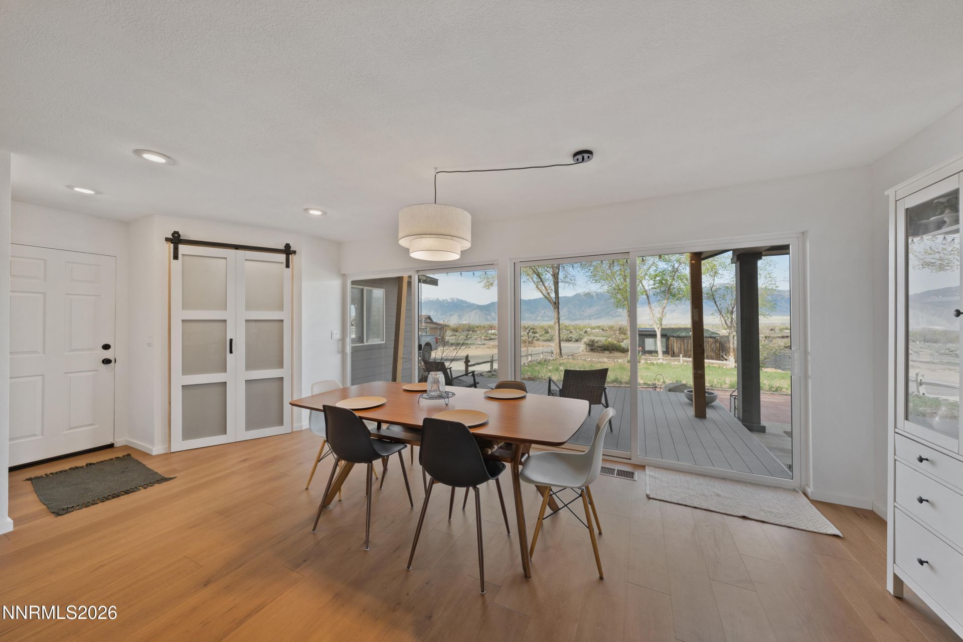 This modern farmhouse sits on a full acre, offering privacy, open space, and unobstructed views of the surrounding mountain range with no front neighbors in sight. The exterior features fresh paint, while inside, the home has been thoughtfully upgraded throughout. The kitchen is new with designer finishes and upgraded appliances, creating a clean, elevated space that's both functional and beautiful. The home features a new roof, new windows, fresh interior paint and engineered hardwood floors. Updated bathroom vanities, cabinets, and custom touches throughout the home add a unique, high-end feel. Large floor-to-ceiling windows in the front flood the space with natural light and open to a new deck that creates seamless indoor-outdoor living year-round. The backyard landscaping has been enhanced for both relaxation and entertaining, and the location couldn't be more convenient-just minutes from everyday essentials like Trader Joe's, close to local schools, about 30 minutes to Lake Tahoe and roughly 35 minutes to Reno. The property also includes a large storage carport with plenty of room for RVs, boats, ATVs, and all your adventure gear. The 4-car spacious garage features an electric vehicle charge outlet.