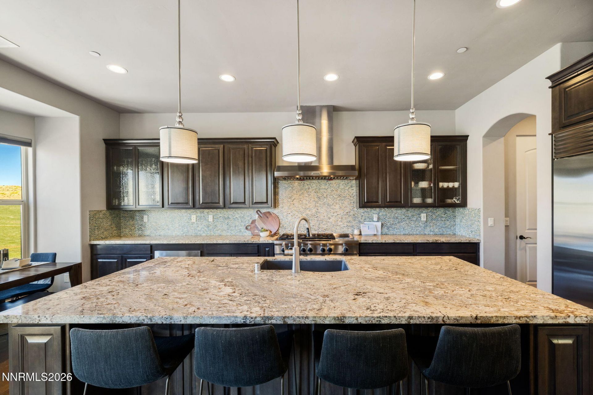 Welcome to 3172 Vista Favoloso, a beautifully designed 4-bedroom, 4.5-bath modern home located in the gated Villagio community in Reno, Nevada. Offering over 3,500 square feet of thoughtfully designed living space, this luxury home in Reno, NV blends comfort, functionality, and elevated design. Nearly every room captures views of the Toiyabe National Forest in the distance, creating a serene, private setting that feels connected to nature. The kitchen serves as the heart of the home, designed for gathering and entertaining, featuring a large granite island, commercial-grade range and hood, and a walk-through butler's pantry. The open-concept main level is filled with natural light and includes a spacious living area, a tranquil primary suite that feels like a true retreat, and a secondary en-suite bedroom, ideal for guests or multigenerational living. The lower level offers a versatile bonus room along with two additional bedrooms, each with their own private bath, providing flexibility for a home office, media room, or guest accommodations. Step outside to a custom backyard designed for year-round enjoyment, complete with a built-in BBQ kitchen, gas fire pit, and low-maintenance turf. This space is perfect for entertaining or relaxing in your own private outdoor oasis. Additional features include approximately 750 square feet of walk-in under-house storage, a dedicated closet office, Hunter Douglas blinds, central vacuum, two tankless water heaters, and a spacious three-car garage. Ideally located just minutes from shopping, dining, and outdoor recreation, this home offers convenient access to Lake Tahoe, hiking trails, and golf courses, making it a standout opportunity for buyers seeking a modern home in Reno, NV with both lifestyle and location.