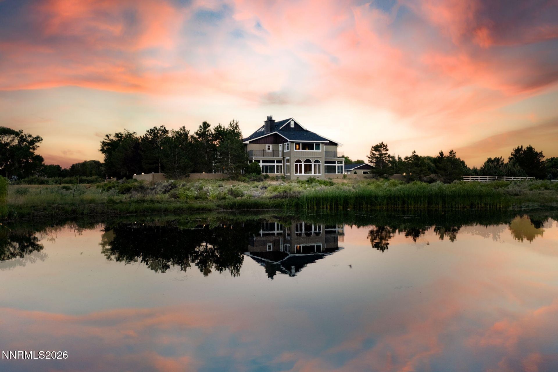 A rare offering in Northern Nevada, this magnificent European Ranch-style estate sits on 25 pristine acres bordering the Carson River and a 750-acre nature preserve, delivering an unmatched combination of luxury, privacy, and natural beauty in the scenic Carson Valley. Spanning over 7,000 sq. ft., the open and expansive floor plan is designed for both grand entertaining and comfortable everyday living. Six bedrooms include two primary suites, each featuring a private en-suite bath and fireplace. Four and 2 half baths total, including Jack & Jill configurations, serve the home with ease. Multiple living areas with fireplaces, oak hardwood and solid flagstone flooring, enclosed patios, and exterior balconies frame sweeping views of the surrounding landscape. A convenient elevator services multiple levels throughout the home. The gourmet kitchen is outfitted with a commercial-grade range, dual sinks, and generous counter and storage space - ideal for culinary enthusiasts and large-scale entertaining alike. Climate and comfort are handled by four independent HVAC systems supplied by natural gas, well water, and topped off with a brand-new 40-year roof for lasting peace of mind. Car enthusiasts and hobbyists will appreciate the 6-car attached garage plus a separate 3-bay garage complete with workshop space, a half-bath, and secured storage - offering exceptional functionality beyond the main residence. The grounds are equally impressive. Beautifully landscaped with mature trees, the 25 acres are divided into usable pastures with vinyl fencing and include a 3,200 sq. ft. barn, a 3-bay agricultural garage, and additional outbuildings for equipment or storage. A stocked private pond and 750 feet of Carson River frontage set a tranquil tone, while the neighboring 750-acre nature preserve attracts diverse wildlife including deer, quail, hawks, eagles, and waterfowl throughout the year. Nestled in the scenic Carson Valley and accessible to the greater Reno-Tahoe corridor, this is a truly rare opportunity to own a private estate of this scale and caliber. Schedule your private showing today.
