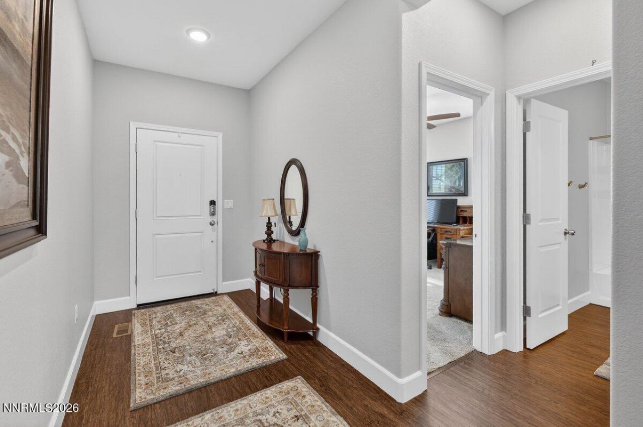 Legacy Pointe, North Reno 3 bed, 3 bath 1,819 sq ft Oversized primary suite Solar-equipped home Covered patio Located in the Legacy Pointe subdivision in North Reno, this 3-bedroom, 3-bath home with 1,819 square feet offers convenient access to regional parks, open space, and major commuter routes. Positioned within the North Valleys area, the property is approximately 1-2 miles from North Valleys Regional Park and provides proximity to Sierra Sage Golf Course, grocery stores, dining, and everyday services along the Lemmon Drive corridor, with quick access to US-395. The home features an open-concept layout connecting the kitchen, dining, and living areas, designed for both daily living and entertaining. The kitchen offers ample counter space and storage, supporting functionality and flexibility within the main living area. The primary suite is oversized, offering additional space for a sitting area, workspace, or flexible use. The layout provides separation from secondary bedrooms for added privacy, while the third bedroom and additional bath allow for guest use, office space, or multi-purpose living. This solar-equipped home includes installed solar panels, supporting energy efficiency and long-term utility cost savings. Outdoor space features low-maintenance landscaping, reducing upkeep while maintaining usable yard space. A covered patio provides a designated outdoor area for seating, dining, or year-round use. The lot is designed for efficient use without oversized yard maintenance, offering a balance of outdoor functionality and ease of care. The property includes an attached garage and driveway parking, with placement on residential streets within the Legacy Pointe community. Legacy Pointe is positioned near established parks, trail systems, and recreational areas, with access to outdoor activities throughout the year. Nearby amenities include North Valleys Regional Park (approx. 1-2 miles), Sierra Sage Golf Course (approx. 2-3 miles), grocery and retail options along Lemmon Drive (approx. 2-4 miles), and US-395 access (approx. 1-3 miles) for connections to downtown Reno and surrounding areas. Includes 3D tour, video tour, and additional media for further property exploration.